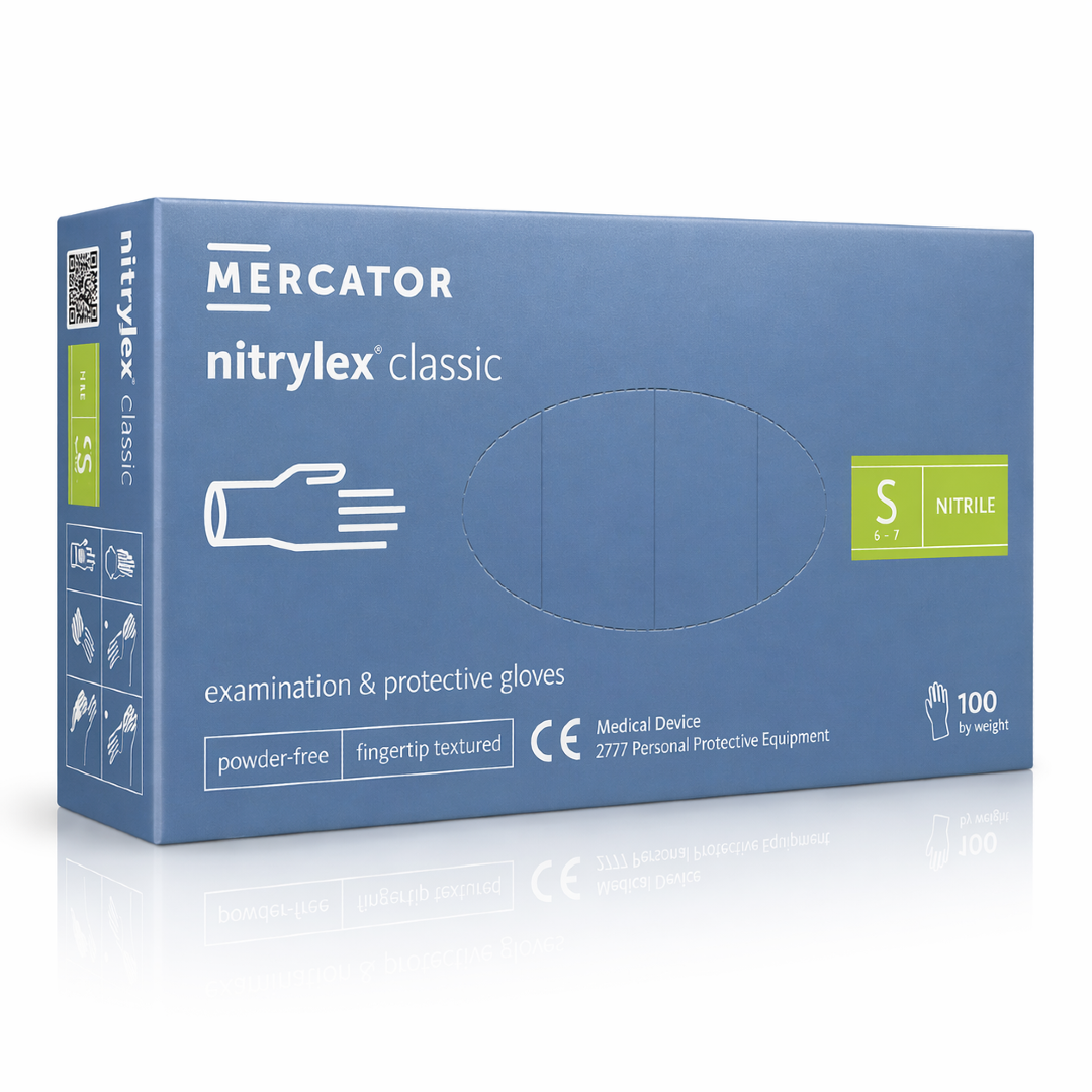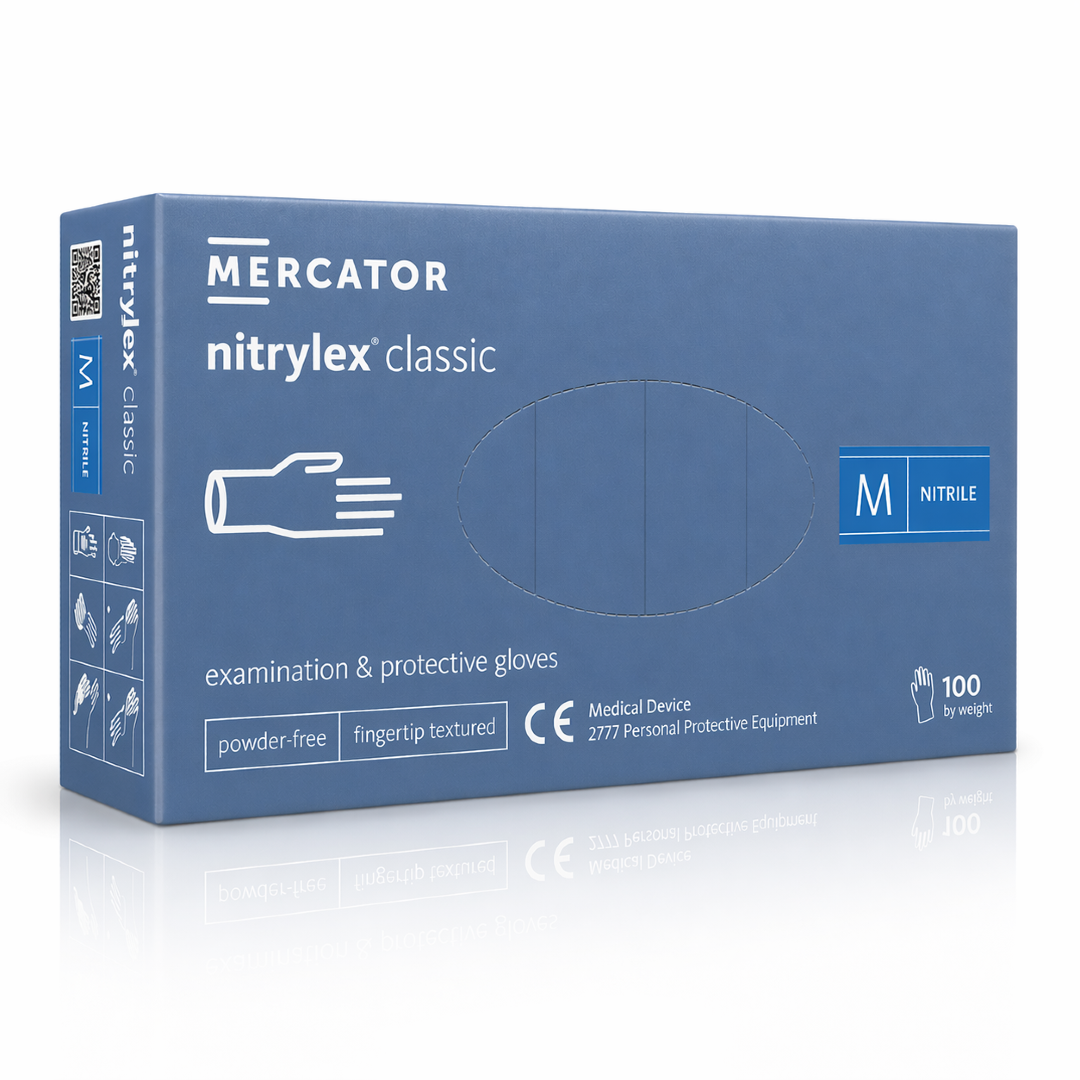 to jednorazowe rękawice diagnostyczne i ochronne w klasycznym niebieskim kolorze, wykonane z wysokiej jakości nitrylu, przeznaczone do pracy w gabinetach kosmetycznych, studiach tatuażu, salonach fryzjerskich i barberskich oraz w ochronie zdrowia. Rękawiczki Mercator Nitrylex Classic Blue łączą komfort noszenia z wysoką odpornością mechaniczną i chemiczną, a klasyczny niebieski odcień to uniwersalny standard sprawdzający się w codziennej pracy profesjonalisty.